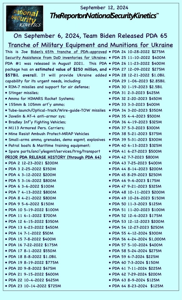 Donald Trump, Election 2024, Foreign Policy Research & Analysis, Joe Biden, Kamala Harris, Military Operations, History & Cyber Warfare, U.S. Presidency, ukraineThe Latest Tranche of Military Equipment and Munitions for Ukraine Share this: Click to share on X (Opens in new window) X Click to email a link to a friend (Opens in new window) Email Click to share on Pocket (Opens in new window) Pocket Click to share on X (Opens in new window) X Like Loading... Standard
