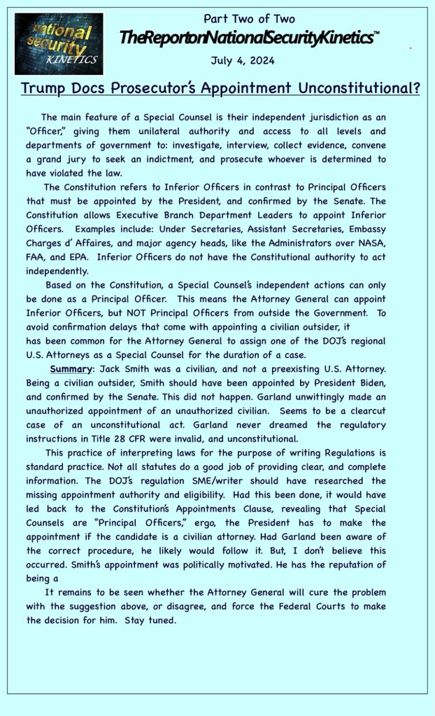 Donald Trump, Election 2024, Miscellaneous Topics, National Security, Regulations, The Judiciary, U.S. Code, u.s. constitution, U.S. PresidencyExplainer: Special Counsel, Jack Smith, Appointment Unconstitutional? Standard